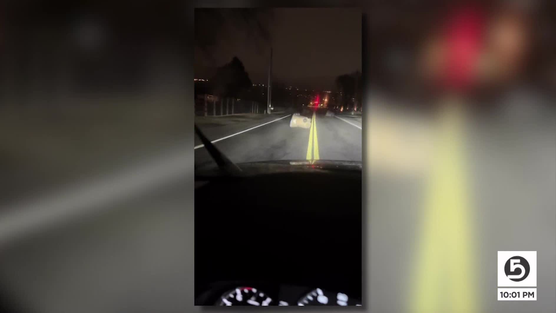 Initially thinking the trash cans might be part of a prank, her fears escalated when she spotted a figure standing in the road ahead. She said the man then swung at her vehicle with what she believes was a machete.