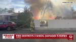 Despite the destruction of three sheds and damage to five homes, no injuries were reported. Firefighters acted quickly, and residents said it could have been much worse.